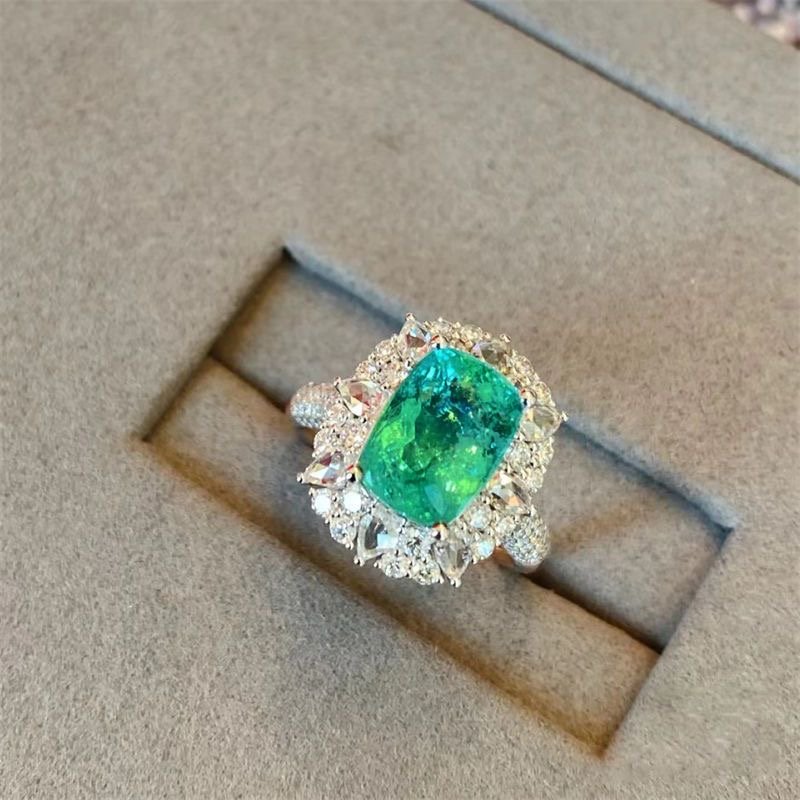 High-grade colorful emerald diamond-encrusted hollow ring