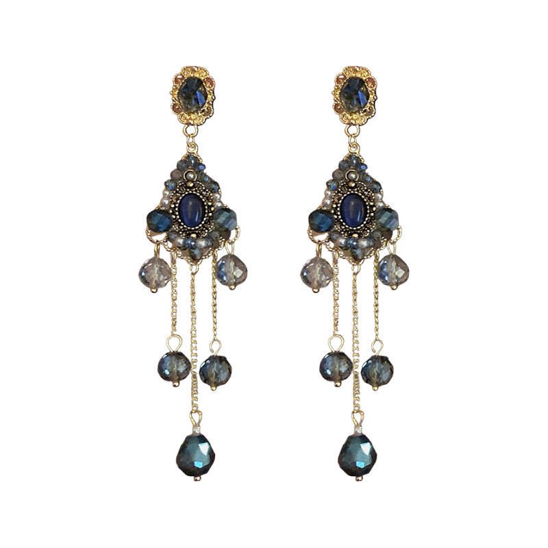 French design sense of silver needle crystal tassel earrings quantity