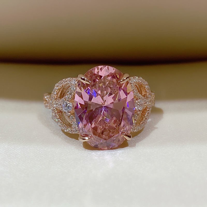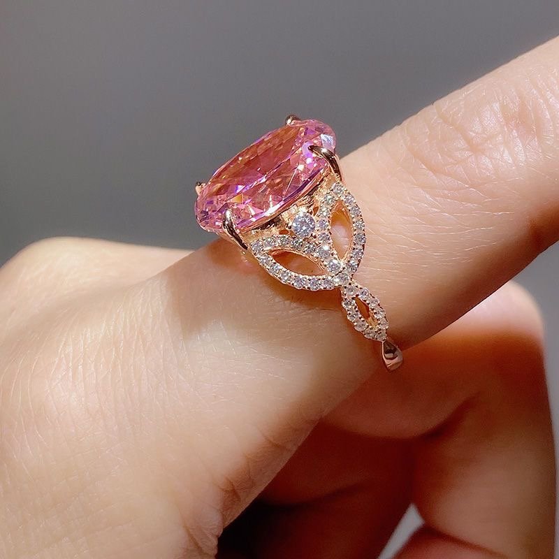 Pink diamond S925 sterling silver ring plated with rose gold quantity