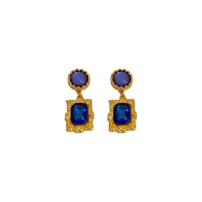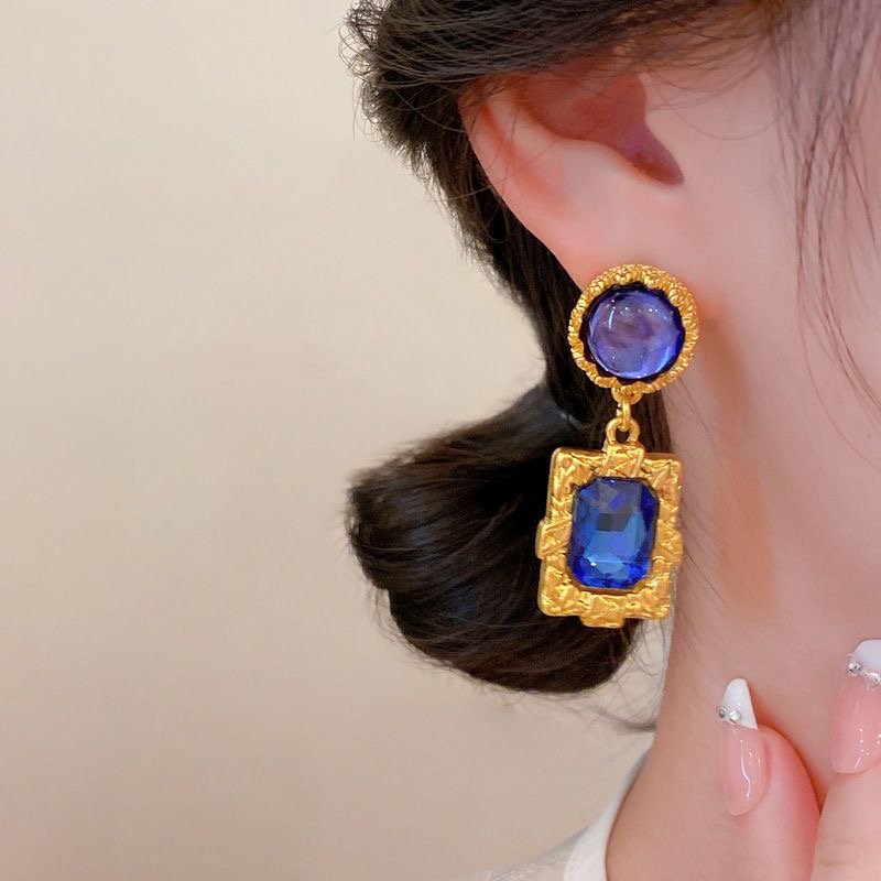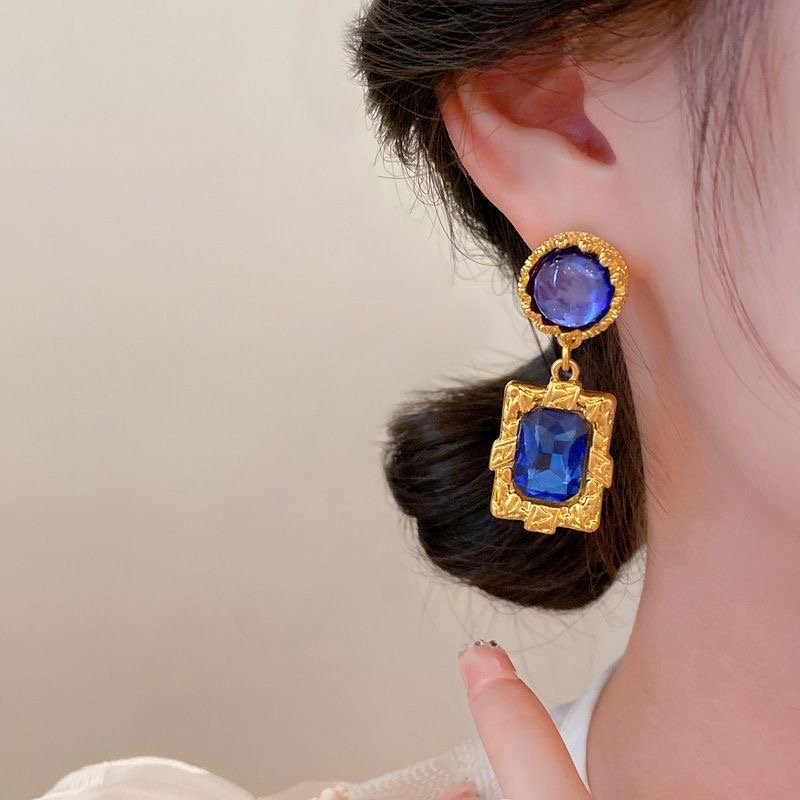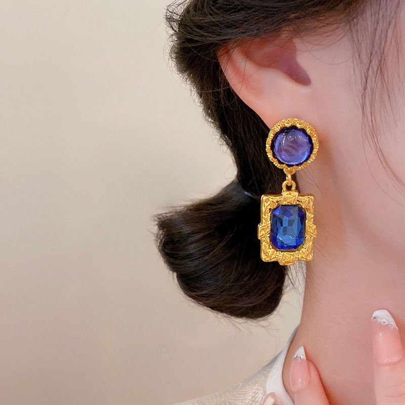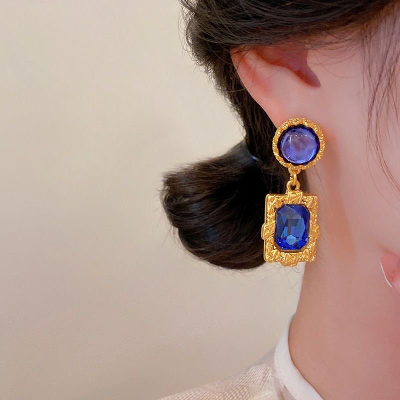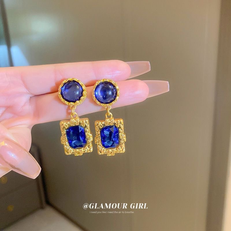 Silver needle dark blue diamond earrings retro quantity